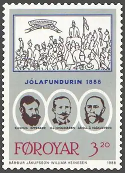 - ^ Debes, Hans Jacob. 1982. Nú er tann stundin ...: tjóðskaparrørsla og sjálvstýrispolitikkur til 1906, við søguligum baksýni. Tórshavn: Føroya Skúlabókagrunnur, p. 154.