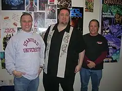 ![]() Greg Weisman, Christopher Jones and Kevin Hopps (left to right) are pictured at the Warner Brothers Animation studios in February of 2012. | |
