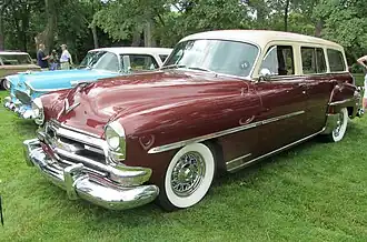It was introduced with the straight-six engine as an alternative to the Buick Estate, Oldsmobile Series 60 and Packard One-Ten woodie station wagons, and was installed in the Series C-28 Chrysler Windsor offering six or nine passenger accommodation with a six-cylinder engine, or the Series C-30 Chrysler Saratoga with the straight-eight engine and nine passenger accommodation of which only one was specially requested for 1941, and was offered as a response to the eight-cylinder Buick Super and the Packard One-Twenty woodie station wagons.[1] Prices listed for the six-cylinder Series C-28 Windsor wagon were US$1,492 ($31,896 in 2024 dollars [2]).[1] Production totals record that vehicles that were installed with the six-cylinder engine documented 200 six-passenger wagons were made and 797 nine-passenger wagons found buyers.[1]