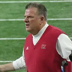 On December 3, 2013, it was announced that Martin would be leaving his position at Notre Dame to take over as the head coach at Miami University.[4] In 2019, He won his first MAC championship with an upset win over Central Michigan in the MAC Championship.[5] In 2023, Miami won the East division with a 7-1 conference record with their only loss coming against West champion Toledo.[6][7] On October 21, during the regular season game between the division winners, Miami quarterback Brett Gabbert suffered a season ending leg injury.[8] In spite of that, Miami won their first MAC Championship since 2019 with a 23–14 upset victory in the MAC Championship Game.[9]