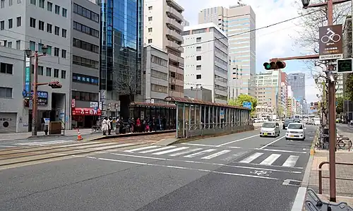 Chuden-mae is a Hiroden station (tram stop) on Hiroden Ujina Line located in Ote-machi 3-chome, Naka-ku, Hiroshima.