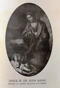 In 1656 in the district called "Madonna del Riposo", at the foot of Mount Bonifato, they built a little Church in honour of the Madonna with the same title. The strip of land needed for its construction was donated by doctor Diego Nicodemi, and there are two notarial deeds, drawn up by the notary La Perna which attest the details; the land should have been about five metres and half long and four metres large.[1] This piece of land was located in the feud of Costa and in contrada the pusaturi.[1]
