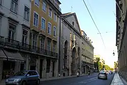 The church is located in the "ravine" area of the Pombaline Lower Town, flanked by buildings of comparable height and facing the street. It is implanted with close to many of comparable historic buildings and monuments, such as the Sé Cathedral of Lisbon, Casa dos Bicos and Praça do Comércio. The primitive church was located in this location, was the second largest Manueline temple in Lisbon, only second to the Monastery of Santa Maria de Belém (the Jerónimos).[2]