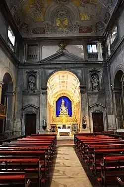 On 1 November 1755, the Lisbon earthquake partially destroyed the Church, resulting in the destruction of part of the vaulted-ceiling and a belfry over the lateral doorway.[1][2] A fire, which was triggered after the event, consumed the orphanage, except the chapel of the Holy Sacrament (the former Chapel of D. Simôa), and altarpiece of the Chapel of the Holy Christ of Padecentes. The church of Conceição dos Freiras was also ruined, making its reconstruction non-viable owing to the new city plan.[1]