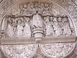 In 1880, the Brotherhood of Leigos, which managed the church completed a public restoration of the sculptures in the tympanum, cleaning the paint that covered the figures.[1]