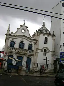 The Church of Our Lady of Remedies is the oldest religious structure in Feira de Santana. By oral tradition,[2] it replaced a small church dedicated to Our Lady of Remedies built by enslaved people, who worshipped in separate spaces due to strict racial segregation in the Portuguese colonial period. Construction of the chapel dates between 1700 and 1705. While not confirmed, the porcelain tiles of the bell tower were a gift of the industrialist Joaquim Pedreira de Cerqueira (1799-1873).[4] By the 19th century the chapel was used for both religious and secular functions; it hosted meetings of the City Council and the Courts of Juries (Tribunais dos Júris), elections, as well as large-scale liturgical celebrations. Emperor Dom Pedro II visited the church on November 7, 1859, as part of his tour of the Northeast region of Brazil.[2]