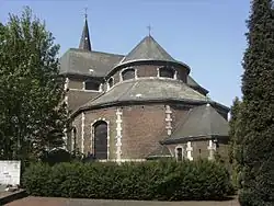 The church's predecessors, whose patron saint remains unknown, belonged to a parish of the old deanery of Fleurus, part of the Diocese of Liège. In 1559, during reforms of the episcopal hierarchy of the Low Countries, this parish was first assigned to the newly created Diocese of Namur[9] and later to the Diocese of Tournai in the Concordat of 1801.