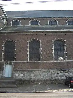 The Church of Saint Sulpice (French: Église Saint-Sulpice; French pronunciation: [sɛ̃sylpis]) is a Catholic church in Jumet, a neighborhood of the Belgian city of Charleroi in Hainaut Province, Wallonia.[1] It is dedicated to Sulpitius the Pious. The oldest material traces of a religious building on the site date back to the 10th century. Three churches built there before the current structure were identified during excavations carried out in 1967. The current classical building was built between 1750 and 1753 by an unknown architect.[2] The brick and limestone church is uniform in appearance. It is composed of six bayed naves flanked by aisles, a three-sided transept, and a choir with a polygonal ambulatory with a sacristy in its axis. The chamfered base is in dimension stone on the frontage and in rubble stones and sandstone for the rest of the base. All of the building's angles are toothed and every second stone is bossed. The church has been listed as a Belgian cultural heritage site since 1949.