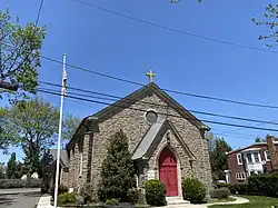 The Church of St. Alban, Roxborough is a parish of the Episcopal Diocese of Pennsylvania in the Roxborough neighborhood of Philadelphia, Pennsylvania. It was founded in 1859 as a chapel of ease of St. David's Episcopal Church in Manayunk, initially with a dedication to St. Peter. The cornerstone for the church building was laid on September 15, 1860, and the church was consecrated by Bishop William Bacon Stevens on January 14, 1862, as his first official episcopal act, having himself been consecrated to the episcopate six days earlier. Its architect was Alfred Byles, who also designed the Fifth Baptist Church at the corner of Eighteenth and Spring Garden in Philadelphia.