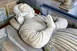 The north transept of the church contains monuments to the Phelips family, of Montacute House, including David and Ann, who died in 1484, and Bridget, who died 1508. There are canopied effigies of Thomas, died 1588, and Elizabeth, died 1598. On the west wall is a marble monument to Edward, who died in 1680.[18]