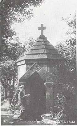 Chad came to Lichfield a few years before he became Bishop of Lichfield in 669 CE for the purpose of religious solitude. He settled in a wood and lived as a hermit in a cell by the side of a spring. From there he was known to preach and baptize his converts in the spring. It is believed that the location of Chad's cell and spring was in the current churchyard.