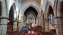 In 1840 the decision was taken to demolish the north aisle and rebuild it in a Victorian Gothic style. In 1862 the chancel and chancel arch were thoroughly restored and the brick clerestory extended over the chancel, a vestry was also added to the north side and the porch to the south. Further restoration work took place on the windows and the stained glass in the chancel. The east end of the south aisle seen today dates from that period.[1]