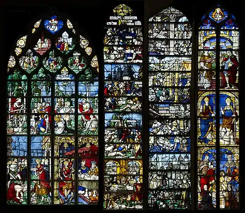 • Window of the Œuvres de Miséricorde, completed in 1520-1530, work of Engrand and maybe of Jean Le Prince;