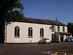 The former chapel with attached presbytery (priest's house) are situated under a continuous hipped roof. The building is constructed of rendered brick with a slate roof. Its plan is rectangular. The chapel, which occupies two thirds of the building, has three bays and is on one storey. The presbytery is on two storeys and has three symmetrical bays.[3]