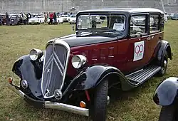 The original Citroën Rosalie was a light-weight racing car that established a succession of records at the Montlhéry racing circuit. More generally the Rosalie was a range of three models/sizes of automobile that comprised the core of Citroën's model range between 1932 and 1938. The three models were originally designated respectively the 8CV, the 10CV and the 15CV, the numbers defining the cars' fiscal horsepower which in turn defined the approximate engine size of each model. After the introduction of the new Traction Avant, the lineup was modified and at the 1934 Paris Salon the two smaller models became the 7UA and the 11UA, now with the overhead-valve engines from the Traction.[1] Starting with the 1933 model year Citroen offered the 1,766 cc 11UD diesel engine option.[2]