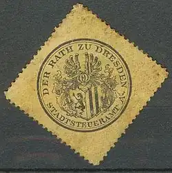 Official documents and publications by the City Council of Dresden still use the histrionic coat of arms: Showing on a golden shield showing a black lion with and two black pales. The lion is looking has a red tongue.