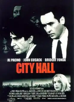 City Hall is a 1996 American political thriller film directed by Harold Becker and starring Al Pacino, John Cusack, Bridget Fonda and Danny Aiello.[3] The film is Becker's second collaboration with Pacino, having directed him in Sea of Love (1989). The film was released on February 16, 1996 and received generally positive reviews from critics.