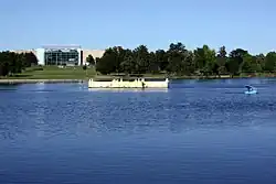 Ferril Lake includes the Prismatic Fountain which dates back to 1908. Originally designed by engineer Frederic W. Darlington and was a revolutionary feature for the time. The recently renovated fountain now boasts LED lights which cycle through different formations, with each cycle spanning an hour.[4][5]