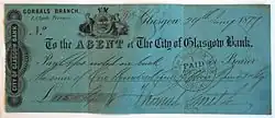 7. ^ "Records of City of Glasgow Bank, bankers, Glasgow, Scotland". University of Glasgow Archive Services.