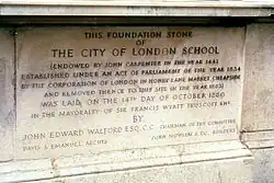 57. ^ a b "History of the City of London School". www.clsb.org.uk. Archived from the original on 22 December 2008. Retrieved 26 August 2009.