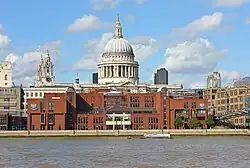 In 1986, the City of London School moved to its present site in purpose-built facilities in Queen Victoria Street (where it is opposite the College of Arms and just below St Paul's Cathedral) on one side and facing onto the banks of the River Thames on the other side. School activity transferred to the new premises over the 1986 summer holidays, in time for the 1986–1987 academic year, and a ceremony for the official opening of the building, by the Princess Anne, was held in 1987. The Millennium Bridge is next to the school buildings.[16]