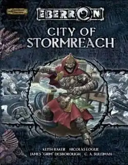 City of Stormreach is an accessory for the Eberron setting that describes the shadowy ruins, sinister organizations, and treasure-laden dungeons that make Stormreach such an appealing destination for player characters. In addition to providing Dungeon Masters with a richly detailed city for their Xen'drik based campaigns, this supplement presents information on the movers and shakers of Stormreach, ready-to-use adversaries, adventure hooks, and location maps.
