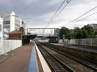Civic railway station was located on the Newcastle line in New South Wales, Australia. It served the Civic part of Newcastle's central business district, opening on 22 December 1935.[2][3] The station had the smallest signal box in the state to control the Merewether Street level crossing. The signal box closed in July 1992.[4] Civic station closed on 25 December 2014, when the Newcastle line was truncated to terminate at Hamilton for the construction of Newcastle Interchange and the Newcastle Light Rail.[5] Civic light rail stop is located in Hunter Street, immediately adjacent to the old station.