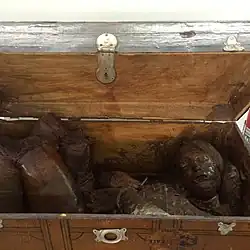 One of the main pieces in the collection is the original trunk used in the Suitcase Crime, a case that covered several Brazilian newspapers in 1928. On October 5, a trunk-shaped suitcase was found in the Port of Santos covered in blood with a mutilated female body inside; consequently, the case became known as the "Crime da Mala" (English: "Crime of the Suitcase").[8][10]