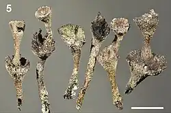 - ^ a b c d Brodo, Irwin M.; Ahti, Teuvo (1996). "Lichens and lichenicolous fungi of the Queen Charlotte Islands, British Columbia, Canada. 2. The Cladoniaceae". Canadian Journal of Botany. 74 (7): 1147–1180. Bibcode:1996CaJB...74.1147B. doi:10.1139/b96-139.
