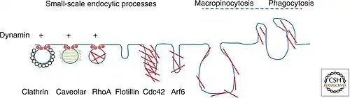 - ^ Mayor S, Parton RG, Donaldson JG (June 2014). "Clathrin-independent pathways of endocytosis". Cold Spring Harbor Perspectives in Biology. 6 (6): a016758. doi:10.1101/cshperspect.a016758. PMC 4031960. PMID 24890511.
