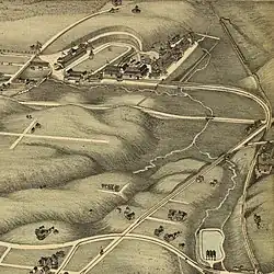 In the fall of 1864, the Union Army camped along this branch of the creek, and for several decades, it was referred to as Shermantown Branch. Flowing in a northeasterly meander through the eastern side of the Midtown neighborhood, it eventually joined the eastern branch of the creek near the site of the present-day Midtown High School stadium.[1]