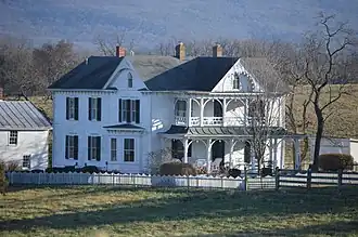 Clem–Kagey Farm, also known as the Hiram C. Clem House and Kagey House, is a historic home and farm located near Edinburg, Shenandoah County, Virginia. The farmhouse was built in 1880, and is a two-story, five-bay, frame I-house dwelling with an integral rear wing. It features a full width, two-story Italianate style ornamented front porch and two brick interior chimneys. Also on the property are the contributing frame garage (c. 1920, the two-story frame wagon shed/shop building (c. 1880), and granary (c. 1880).[3]