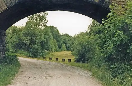 Cliffe Park railway station was opened by the North Staffordshire Railway (NSR) in 1905 on the Churnet Valley line to attract visitors to Rudyard Lake (actually a reservoir), which the NSR were trying to develop as a leisure and tourist attraction including a golf course.[2] The station was originally named Rudyard Lake and was at the northern end of the lake. There were no settlements nearby and consequently the station had no goods facilities. There was one siding but this was used more for stabling excursion trains rather than freight vehicles.[2]
