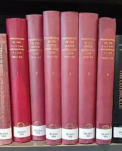 The 28 years of research presented by the members and associates of the club were compiled in seven volumes of Proceedings. At the time of dissolution of the society, an attempt was made to find a buyer for the hundreds of volumes of Proceedings that they had in stock. The club was offered £9 10s by a bookseller, but that offer was declined. Today, a single seven-volume set of the original leather-bound Proceedings sells for more than £500.[17]