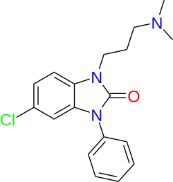 - ^ Lambert P, Evrard G, Durant F, Germain G, Declercq JP (1 August 1978). "5-Chloro-1-[3-(dimethylamino)propyl]-1,3-dihydro-3-phenyl-2 H -benzimidazol-2-one monohydrochloride monohydrate (clodazone)". Acta Crystallographica Section B Structural Crystallography and Crystal Chemistry. 34 (8): 2656–2658. Bibcode:1978AcCrB..34.2656L. doi:10.1107/S0567740878008894.