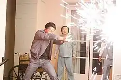 Ando blasts open some emergency exit doors as he and Hiro rescue Dr. Suresh from a mental institution.