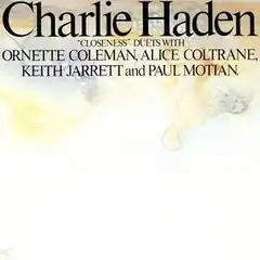 Closeness is an album of four duets by bassist Charlie Haden, recorded in 1976 and released on the Horizon label.[1] It was the first of Haden's two duet releases on Horizon, the second being The Golden Number (1977). Haden’s duet partners are pianist Keith Jarrett, alto saxophonist Ornette Coleman, harpist Alice Coltrane and drummer Paul Motian.