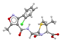 Cloxacillin is an antibiotic useful for the treatment of several bacterial infections.[1] This includes impetigo, cellulitis, pneumonia, septic arthritis, and otitis externa.[1] It is not effective for methicillin-resistant Staphylococcus aureus (MRSA).[2] It can be used by mouth and by injection.[1]