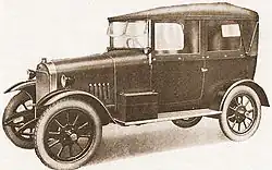 In 1921 they made their first four-wheel car, the 10 or 10/20, powered by a water-cooled 1328 cc side valve engine which they built themselves. The car is thought to have been designed by Arthur Alderson who also worked for Calcott and Lea Francis.[2] Drive was to the rear axle through a cone clutch and three speed gearbox. The car with open tourer coachwork cost £525 in 1921 falling to £225 in 1926.[2] The last cars of this type were produced in 1926 and possibly as many as 2000 were made.[2] In 1922 it was joined by the 11.9 with a longer wheelbase and 1645 cc engine. A six-cylinder model, the 16/40, was listed in 1923 but probably never went into production.