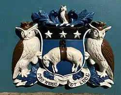 - Supporters: On either side an owl Proper ducally crowned Or.