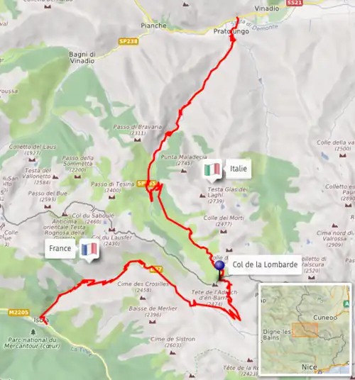 2. ^ "CyclingCols - Col de la Lombarde/Colle di Lombarda". CyclingCols. Retrieved 2025-08-02.