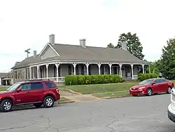 Away from the courthouse square, the most significant structures are a group of seven buildings on 5th Street known collectively as Commercial Row. The buildings were constructed in the 1840s, and have served as the commercial hub of Tuscumbia. One block west of Commercial Row is the Railway Depot. The Tuscumbia Railroad Company was chartered in 1830 and had extended their line to Decatur by 1834. The Victorian depot was built in 1888 to replace a former frame structure, and given to the city in 1948. Other buildings in the district include the First Presbyterian Church (built 1824), St. John's Episcopal Church (built 1852), First Baptist Church (built 1903), and the Julian House (built in Cherokee and moved to Tuscumbia in the 1850s).[2]