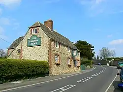 The oldest parts of the Church of England parish church of All Saints are late 12th-century;[8] other parts are 13th-century and the tower is 15th-century. The building was refashioned in the 18th century and restored by Street.[9] In 1708, Abraham I Rudhall of Gloucester cast a ring of five bells for the west tower. In 1884, Mears and Stainbank of the Whitechapel Bell Foundry recast the third bell.[3] In 1938, Mears and Stainbank cast a new treble bell to increase the ring to six.[10] All Saints is a Grade II* listed building.[8]