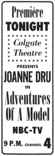 An August 19, 1958, advertisement for the premiere episode of Colgate Theatre. | |