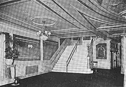 Built in 1920 as B.S. Moss' Coliseum Theatre, the venue was originally a movie palace designed by architect Eugene De Rosa.[4] Marble interiors were done by Voska, Foelsch, & Sidlo Inc, terra cotta by New York Architectural Terra-Cotta Company, ornamental plastering by Architectural Plastering Company, Inc., Peter Clark installed the rigging system, windows supplied by S. H. Pomeroy Company, Inc., Sexauer & Lemke Inc. installed the ornamental iron work, draperies and wall coverings by Louis Kuhn Studio, mirrors & console tables by Nonnenbacher & Co, and the pipe organ was installed by M. P. Moller.[5]