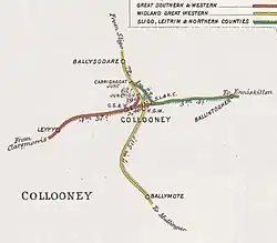 2. ^ FUSIO. "Collooney Railway Station, BLEACHGREEN, Collooney, SLIGO". Buildings of Ireland. Retrieved 11 August 2022.