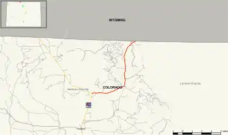 ![]() Map of Jackson County in northern Colorado with SH 127 highlighted in red | ||||