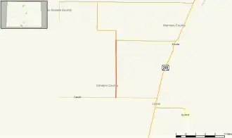 | Conejos–Alamosa county line | | 6.067 | 9.764 | Conejos CR DD west | Northern terminus |