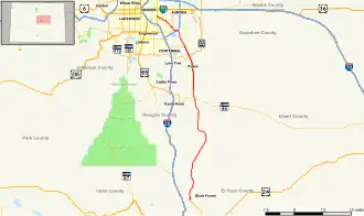 ![]() Map of central Colorado with SH 83 highlighted in red | ||||