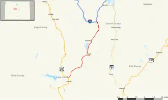 ![]() Map of central Colorado with SH 91 highlighted in red | ||||